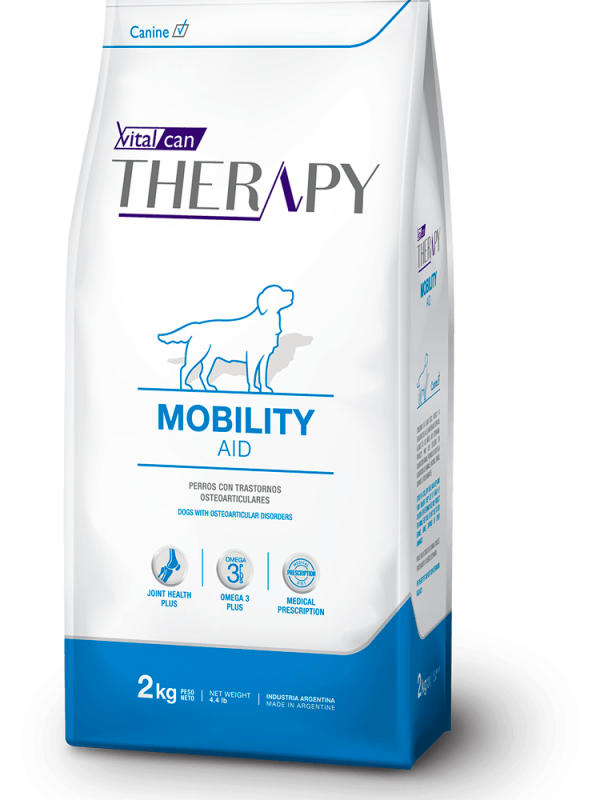 VITALCAN THERAPY MOBILITY AID es un alimento de prescripción para perros de todas las edades con trastornos osteoarticulares. Formulado con nutracéuticos de efecto antiinflamatorio y condroprotectores que favorecen la recuperación del cartílago articular, así como moderados niveles de calorías que contribuyen a prevenir el sobrepeso.